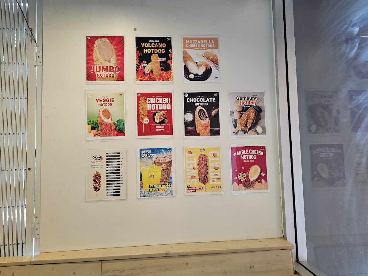 One of their standout dishes is the Whole Mozzarella Cheese rice hot dog, which features full mozzarella cheese encased in sticky rice batter. For meat lovers, the Half Mozzarella Hotdog offers a perfect blend of cheese and sausage. Another must-try option is the Potato Hotdog, a crispy fried potato-wrapped rice hot dog with a mix of beef and chicken. And for those craving a Canadian twist, the Poutine Hotdog combines whole mozzarella hot dog with potato toppings.